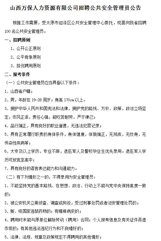 根據(jù)工作需要,經(jīng)市政府批準,現(xiàn)面向社會招聘60名(男35人,女25人)警務輔助人員,派遣至太原市公...