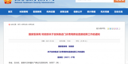 為了解決百姓門診費用 跨省直接結(jié)算問題 國家醫(yī)保局、財政部下發(fā) 《關(guān)于加快推進門診費用 跨省直接結(jié)算工作的通知》